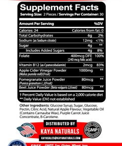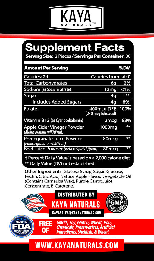 - ✔️POWERFUL INGREDIENTS –Â We’ve included many other extremely beneficial vitamins and nutrients in this gummy including Vitamin B12, Folic Acid, Pomegranate Juice, and Beet Juice.