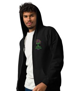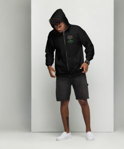 Designed with style and comfort in mind, this hoodie will quickly become your new favorite. It’s made from soft fleece inside and outside, with a sturdy metal zipper, convenient front pockets, and a hood with color-matched drawstrings.
