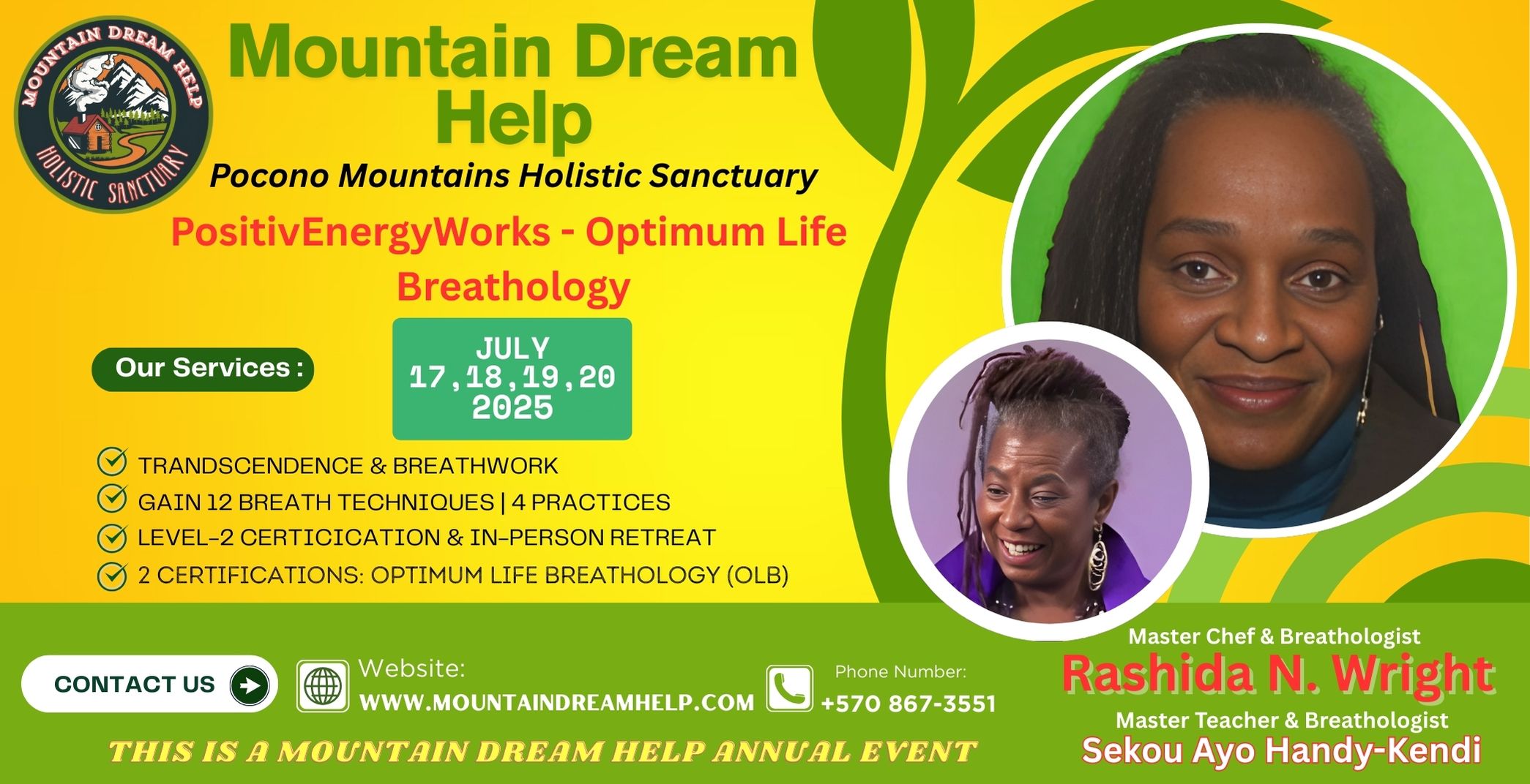 We invite you to join us for this life-changing retreat from July 17th to July 20th, 2025, with check-in on the evening of July 17th. This retreat offers an unparalleled opportunity to deepen your connection with your inner self while benefiting from Rashida’s culinary expertise and Ayo’s mastery of breathwork.